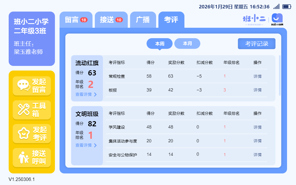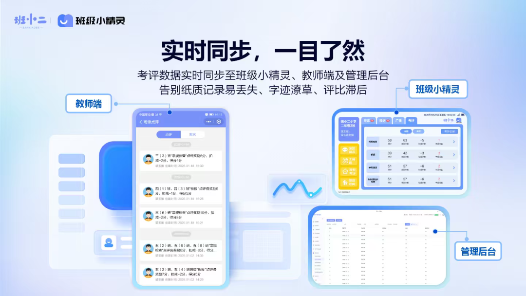 多端同步:考评数据实时同步至班级小精灵、教师端、管理后台;