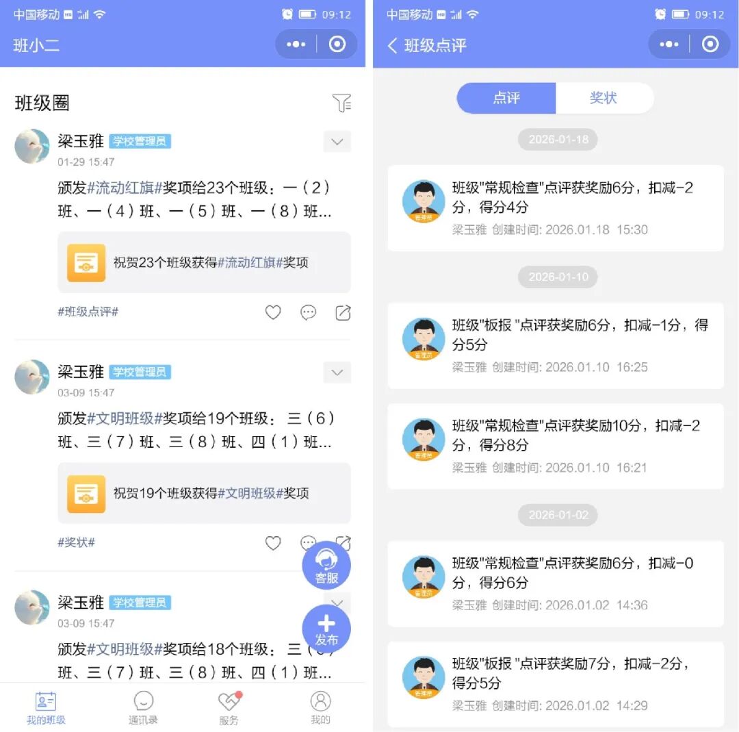 即时可见:评分提交瞬间,班主任手机端即可收到通知;